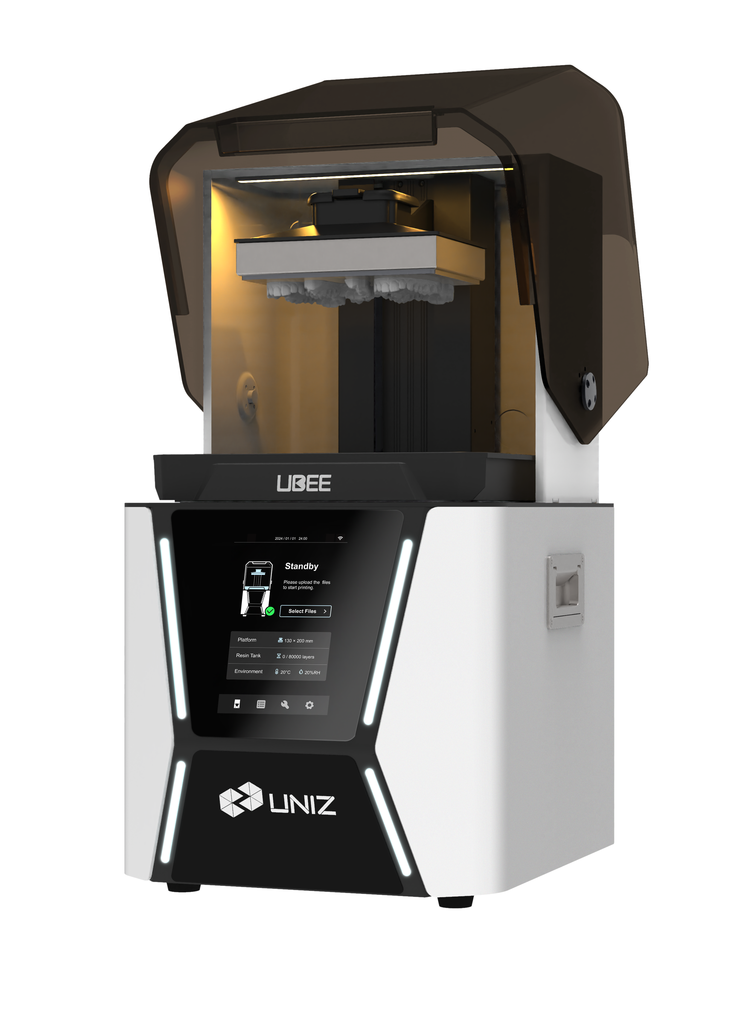 UBEE - это самый современный стоматологический 3D-принтер, обеспечивающий непревзойденную точность и эффективность. Основанная на передовой технологии MSLA и сфокусированном световом луче с высокой выходной мощностью 16 МВт / см2 и исключительной однородностью 95%, она обеспечивает точные отпечатки с длиной волны 405 нм и разрешением XY 34 мкм по всей платформе.